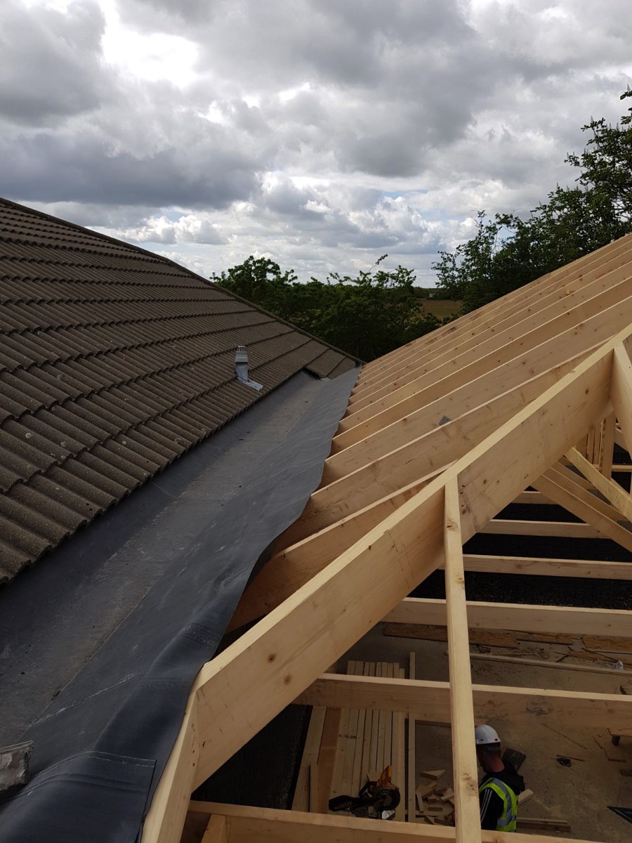 Starbucks, Newmarket, May 2018 - roof structure, box cutting and roof tiling